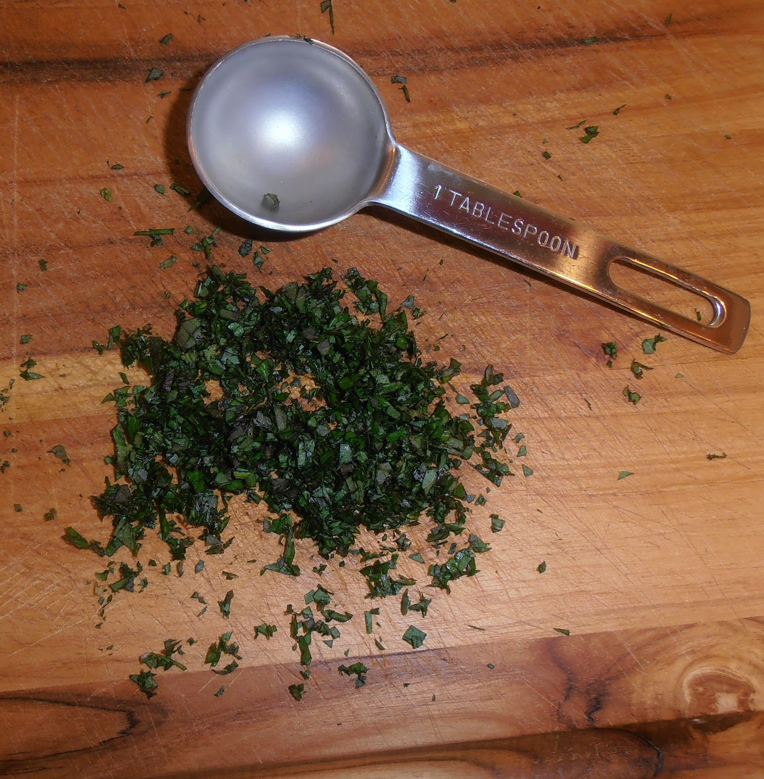 I estimated the quantities of flavors in the tomato juice by recalling that Miss Pinedo cautioned her readers to only use a few cloves in any recipe. I thought one tablespoon of finely chopped mint would be enough to taste without being overwhelming. Marinades are typically strong in flavor before cooking, so that was my goal.